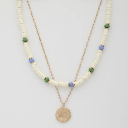 Coin Wood Bead Layered Necklace