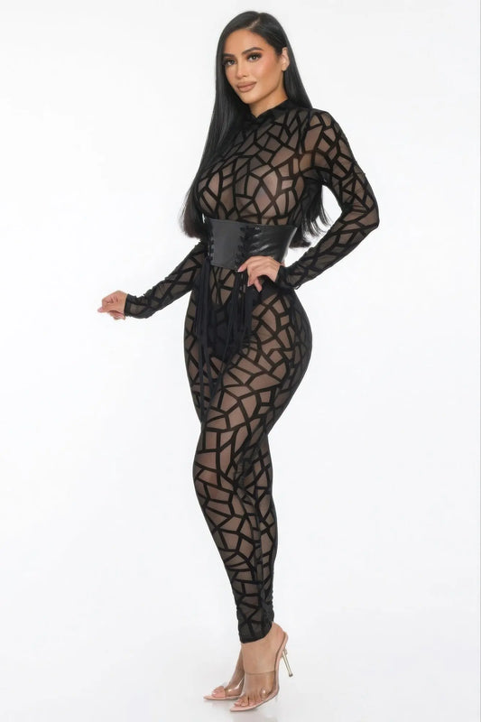 Printed Mesh Lace Up Romper